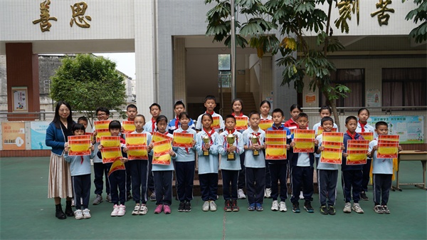 11月15日,嵐田小學(xué)全體師生齊聚國旗下,為運(yùn)動健兒們舉行頒獎儀式,李嬌艷校長親切地為獲得個人獎項(xiàng)的小小運(yùn)動員們頒發(fā)獎狀與獎杯,鼓勵他們繼續(xù)發(fā)揚(yáng)不服輸、不放棄的拼搏精神,創(chuàng)造更美好的未來。