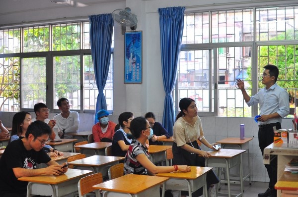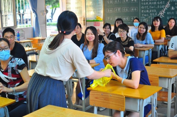 下午4點50分,模擬演練開始。上課期間,二甲班一名“學(xué)生”頭暈胸悶想嘔吐,報告上課老師。上課老師立即戴好口罩,提供嘔吐袋給學(xué)生并打電話報告領(lǐng)導(dǎo)小組成員。班長迅速疏散學(xué)生到戶外,領(lǐng)導(dǎo)小組成員接到通知,啟動應(yīng)急預(yù)案,組織應(yīng)急小組成員前來支援處置。衛(wèi)生保健組老師對全班學(xué)生進行體溫復(fù)測,引導(dǎo)嘔吐學(xué)生到隔離點觀察,消毒組老師立即使用專用消毒桶、掃把、抹布等,配置消毒液,對現(xiàn)場進行消毒,并對嘔吐物進行殺菌消毒。演練過程迅速、有序,分工明確,在最短時間內(nèi)完成突發(fā)事件應(yīng)對與處理。