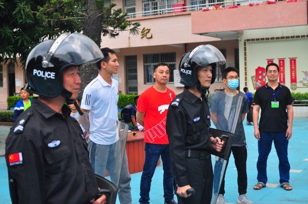 下午4點(diǎn)40分,演練活動(dòng)準(zhǔn)時(shí)開始。一名“暴徒”手持“兇器”,在未經(jīng)學(xué)校安保人員允許情況下,強(qiáng)行闖入校園。學(xué)校應(yīng)急工作小組立即行動(dòng),預(yù)警信號(hào)響起,師生進(jìn)入警備狀態(tài),做好防備措施。安全保衛(wèi)小組攜帶防暴器械,以最快的速度到達(dá)事發(fā)現(xiàn)場,阻止暴力分子進(jìn)入校園;值班老師迅速緊急疏散學(xué)生到安全區(qū)域,確保學(xué)生安全。在大家的齊心合力下,短短三分鐘, “暴徒”被制服了,“兇器”也被奪下。全校師生無一人“受傷”。至此,警報(bào)解除,演練活動(dòng)順利完成。