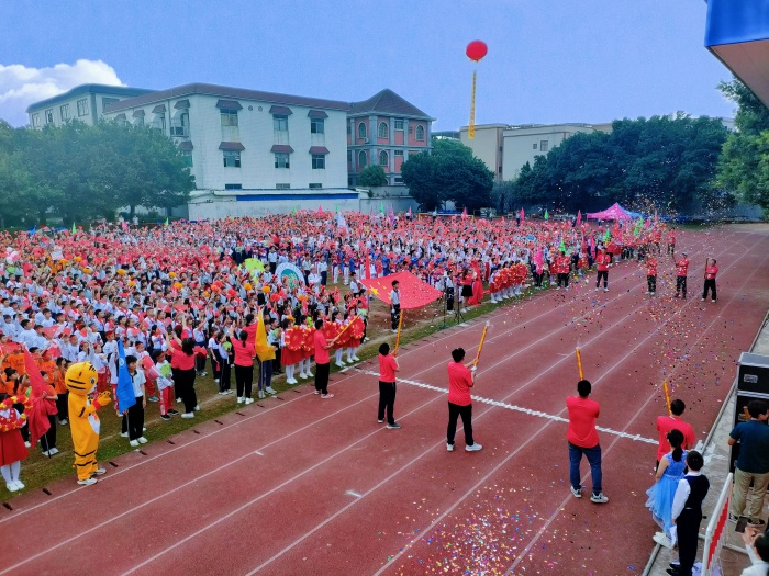 旌旗招展迎風(fēng)飄,呼聲陣陣聲滿天。隆重而莊嚴的運動會炫彩開幕。伴隨著《運動員進行曲》激昂的旋律,各班級同學(xué)以整齊的方陣在國旗隊、彩旗隊的引領(lǐng)下,昂首步入會場。鏗鏘有力的口號,彰顯著孩子們的蓬勃朝氣和高昂斗志?!?/p>