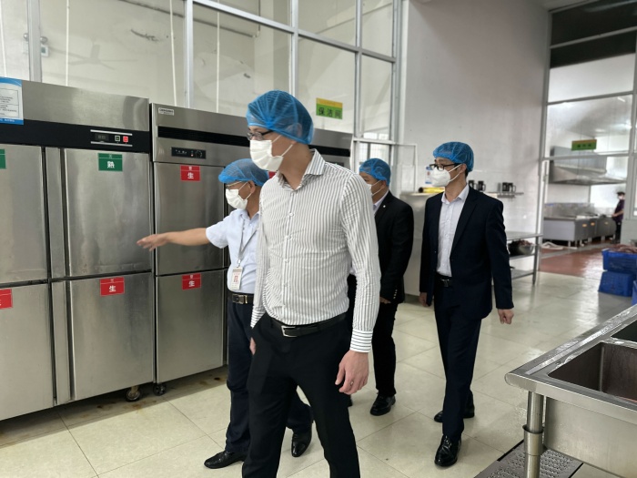 在校長(zhǎng)肖曉、副校長(zhǎng)鄧亮的陪同下,冼委員和熊主任首先深入巡查了學(xué)校飯?zhí)茫敿?xì)了解學(xué)校飯?zhí)萌粘_\(yùn)營(yíng)、食品安全管理、物資儲(chǔ)存、制度建設(shè)、環(huán)境設(shè)施等情況,并提出學(xué)校要進(jìn)一步完善飯?zhí)酶鞣矫嬖O(shè)施建設(shè),為師生創(chuàng)建良好舒適的就餐環(huán)境。
