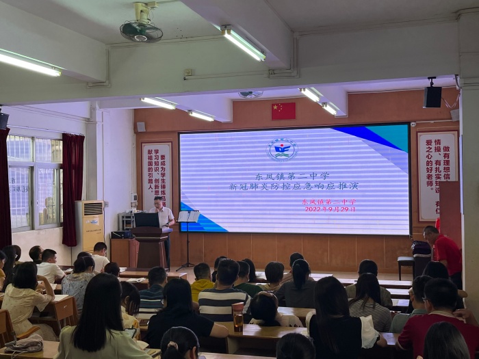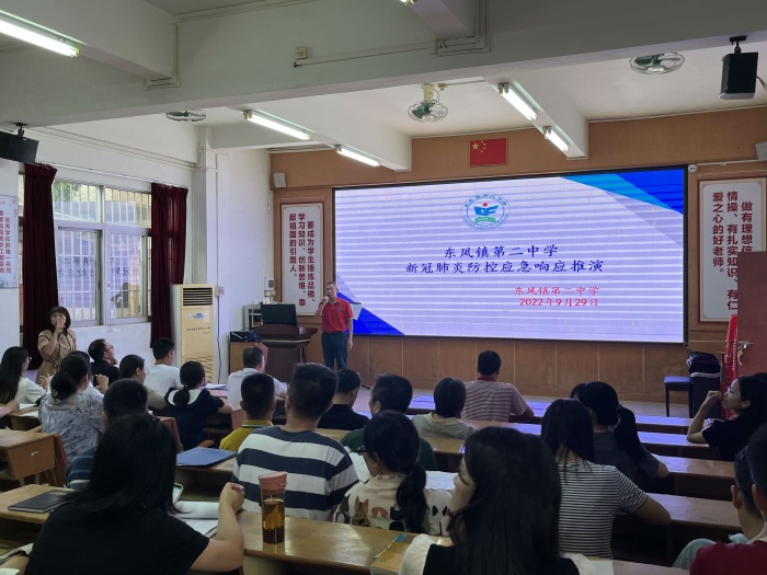 為了做好國慶放假前安全教育,貫徹落實上級部門關(guān)于國慶節(jié)假期期間的疫情防控工作部署,做到科學防控,守護校園安全防線,9月29日下午,中山市東鳳鎮(zhèn)第二中學在學校階梯室開展了節(jié)前新冠肺炎疫情師生應急響應處置演練活動。全體教職員工參會,學校衛(wèi)生健康副校長梁景榮進行防疫安全主題培訓。
