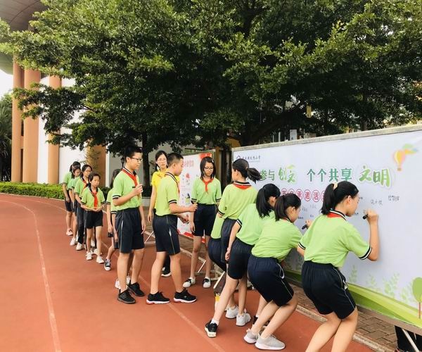 最后,全體師生就“同做文明人,共創(chuàng)文明城”宣誓,并進(jìn)行了簽名承諾。