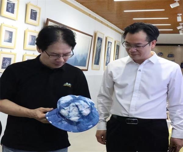 沈文老師一行首先來到非遺民族技藝展示館,欣賞了孩子們創(chuàng)作的一幅幅精美的扎染創(chuàng)意美術(shù)作品。接著課題主持人吳連娟老師向?qū)<覀儏R報中期研究成果,分別從課題簡介、課題研究目標(biāo)、階段研究內(nèi)容、主要研究進(jìn)展、階段研究成果和效果、主要創(chuàng)新點、存在的問題、下階段研究計劃等方面進(jìn)行匯報。專家們認(rèn)真聽取了中期報告,查閱了課題相關(guān)資料,肯定了課題組工作扎實、研究方向明確、思路清晰。