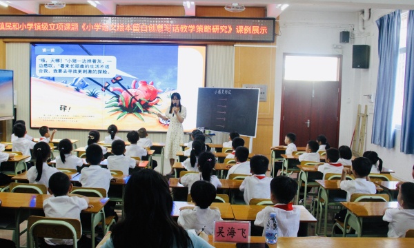 活動的第二部分是教研評課環(huán)節(jié)。首先是兩位老師對自己執(zhí)教的這節(jié)課進行說課,接下來老師們積極評課議課,從教學內容、教學方法等方面各抒己見,紛紛指出課堂教學的亮點以及有待改善的地方。最后,吳海飛老師對兩位老師的教學給予充分的肯定和贊賞,并以這兩節(jié)課為例進行了細致的闡述,從《小學語文繪本留白創(chuàng)意寫話教學策略研究》和《小學想象類作文運用交際語境的教學策略研究》這兩個課題的概念界定、教學策略以及研究思路等方面提出了建議,為老師們提供了切實可行的幫助。