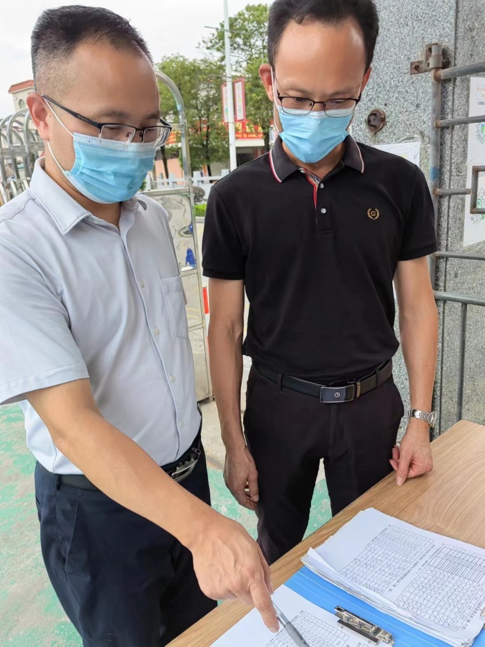 首先,賴立章在羅權(quán)鎏的陪同下進(jìn)行現(xiàn)場(chǎng)實(shí)地查驗(yàn),邊察看校園周邊安全管理,邊聽取匯報(bào),通過查閱臺(tái)賬資料,對(duì)學(xué)校的安全工作、疫情防控工作進(jìn)行了全方面細(xì)致的檢查。