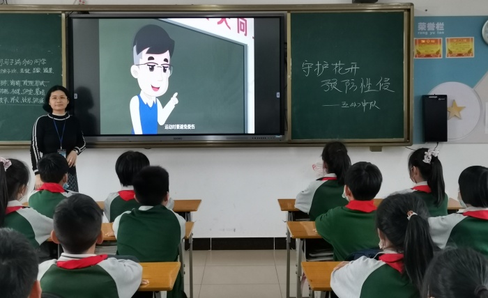 活動(dòng)前,學(xué)校分管德育的阮麗霞主任向同學(xué)們普及了適合相應(yīng)年齡段的性教育知識(shí),教給學(xué)生自我保護(hù)的方法,讓學(xué)生增強(qiáng)防性侵意識(shí)、遠(yuǎn)離危險(xiǎn)。為有效預(yù)防少年兒童遭受性侵害,各年級(jí)班主任老師結(jié)合學(xué)生的年齡特點(diǎn),設(shè)計(jì)并開展了形式多樣的“防性侵教育”主題班會(huì)課活動(dòng)。班主任有的透過(guò)游戲的方式帶領(lǐng)學(xué)生認(rèn)識(shí)自己的隱私部位;有的以ppt的形式展示不同的案例,讓學(xué)生知道性侵害的行為不單單是被觸碰隱私部位,還包括了被強(qiáng)制性觀看色情影片或者強(qiáng)迫他人觸摸對(duì)方的隱私部位等,讓大家學(xué)習(xí)分辨和防范性侵害;還有的班主任采用游戲方式讓學(xué)生知道在不同情況下應(yīng)如何防范性侵害。