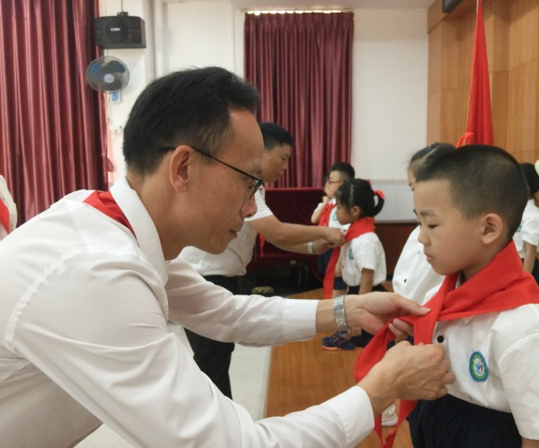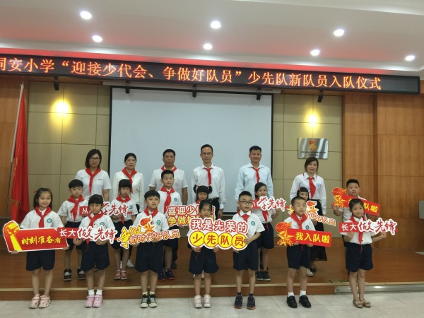 同安小學(xué)一年級(jí)第一批隊(duì)員共75人被正式批準(zhǔn)加入中國(guó)少年先鋒隊(duì),成為光榮的少先隊(duì)員,為少先隊(duì)組織增添了新鮮血液!入隊(duì)儀式上,東鳳鎮(zhèn)少工委副總輔導(dǎo)員盧凱敏宣讀組建一年級(jí)少先隊(duì)組織的決定,宣布新隊(duì)員名單。鎮(zhèn)黨委副書記方小紅寄語新隊(duì)員,她希望廣大少先隊(duì)員們要牢記習(xí)爺爺對(duì)少年兒童的殷切期望,心懷夢(mèng)想,腳踏實(shí)地為夢(mèng)想奮斗,從小學(xué)習(xí)立志,樹立人生的航標(biāo),培養(yǎng)追求真理、報(bào)效祖國(guó)的志向,時(shí)刻把祖國(guó)和人民放在心中,從小聽黨的話、跟著黨走,努力做祖國(guó)和人民需要的好孩子,做祖國(guó)和人民事業(yè)發(fā)展的接班人。