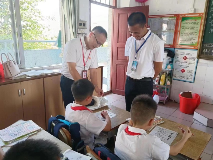 接著賴老師認真聽取了小瀝小學(xué)高強輝校長關(guān)于小瀝小學(xué)本學(xué)期“雙減”工作的落實情況報告。他對學(xué)校各項管理工作給予充分肯定,認為學(xué)校在推進“雙減”工作中政治站位高、舉措到位、成效顯著且有創(chuàng)新意識,教學(xué)常規(guī)落實到位,作業(yè)管控科學(xué)規(guī)范,“五項”管理落到實處,校園安全防線細密,制度方案落實到位。希望學(xué)校堅定不移貫徹落實好黨中央關(guān)于“雙減”工作的決策部署,要把牢關(guān)鍵,凝聚學(xué)校、社會、家庭各方力量,有序推進,夯實學(xué)校主陣地作用,不斷優(yōu)化學(xué)校管理水平,提升課堂教學(xué)質(zhì)量,提高課后服務(wù)水平,辦好讓社會放心、家長安心、學(xué)生舒心的教育。