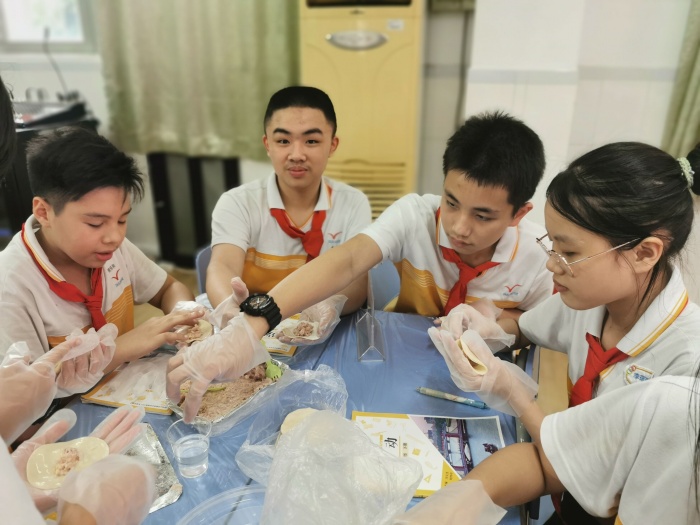第二節(jié)課是由黃建妹老師帶來的勞動(dòng)示范課《包餃子》。借助多媒體與學(xué)生互動(dòng),引導(dǎo)學(xué)生學(xué)習(xí)餃子文化和包餃子方法。在動(dòng)手實(shí)踐環(huán)節(jié),同學(xué)們領(lǐng)到分好的肉餡和面團(tuán)后開始包餃子。個(gè)個(gè)興致勃勃,熱情高漲,搟皮、添餡兒、蘸水、捏花邊……一絲不茍,一個(gè)個(gè)漂亮的餃子在同學(xué)們的手中誕生了。黃老師還利用信息2.0技術(shù)讓學(xué)生當(dāng)場進(jìn)行評(píng)價(jià),學(xué)生評(píng)出了自己心目中最美的餃子。當(dāng)黃老師把熱氣騰騰的餃子端上了桌,同學(xué)們品嘗了自己親手包的餃子,分外高興,贊嘆聲和幸福的笑聲彌漫了整個(gè)階梯室。