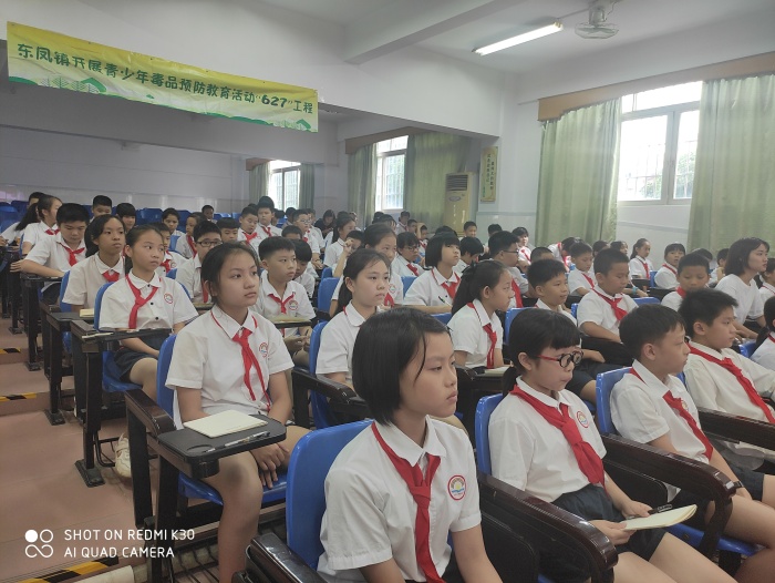 為認(rèn)真貫徹落實(shí)習(xí)近平總書(shū)記關(guān)于禁毒工作系列重要指示精神,深入推進(jìn)青少年毒品預(yù)防教育“6·27”工程,2020年9月21日下午,中山市東鳳鎮(zhèn)小瀝小學(xué)開(kāi)展了“禁毒第一課”系列宣傳活動(dòng),全校師生通過(guò)現(xiàn)場(chǎng)或直播形式參與該活動(dòng)。