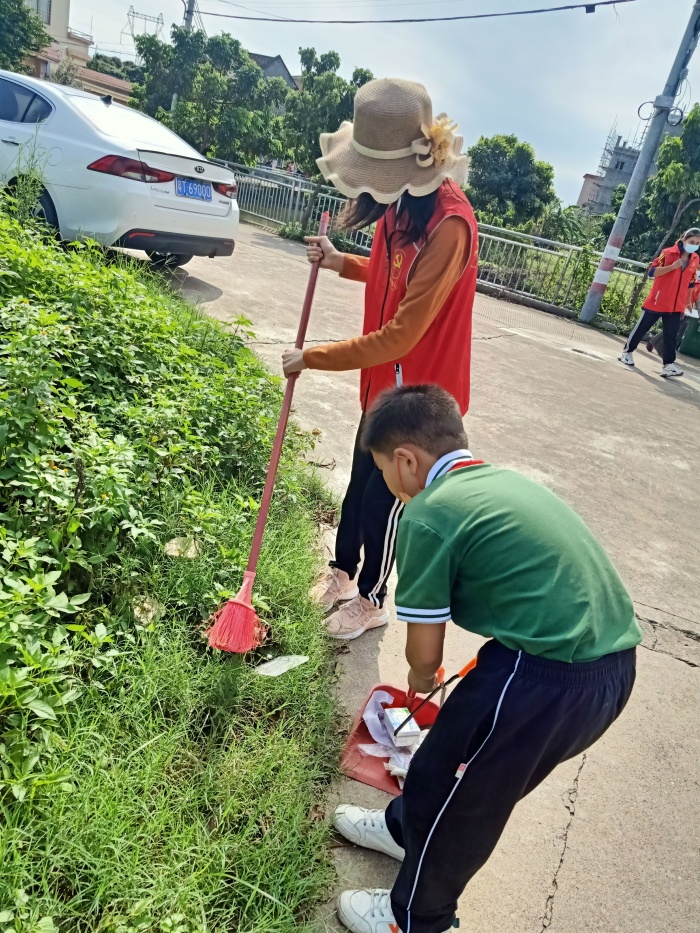 一大早,西罟小學(xué)的親子志愿者們準時集合,整裝待發(fā)。由工作人員有序分組后,各小組攜帶清掃工具去到不同村道進行勞動。勞動中,大家不怕臟不怕累,齊心協(xié)力進行衛(wèi)生打掃。有的清理路邊垃圾,分類垃圾廢棄物;有的全面消除雜草,不放過任何一個環(huán)境衛(wèi)生死角;還有的派發(fā)宣傳單,向村民普及健康衛(wèi)生知識。通過一個上午的努力,清理過的路段變得整潔有序,煥然一新??粗约旱摹皠趧映晒保蠹叶季`放出自豪欣慰的笑容。