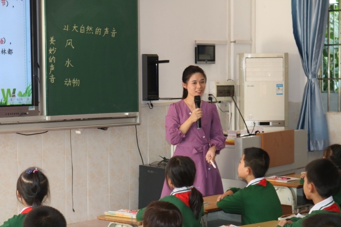 接著,章曉珊老師為我們帶來一節(jié)精彩紛呈的課堂——《大自然的聲音》。章老師牢牢把握課文的語文要素,層層深入,引導(dǎo)學(xué)生感受大自然的聲音,注重讀寫結(jié)合。