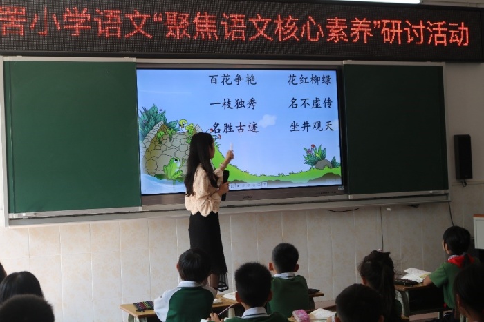 首先由張文娜老師執(zhí)教《坐井觀天》。課堂上,張老師通過展示圖片、聯(lián)系生活實(shí)際,有效引導(dǎo)學(xué)生領(lǐng)悟生字詞的音形義。