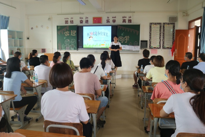下午2點30分,一年級新生家長會在階梯室拉開帷幕。首先,校長崔杰文為各位家長介紹了學(xué)校的辦學(xué)情況以及未來的發(fā)展規(guī)劃。接著,副校長梁慧為家長作了主題為《大手牽小手、快樂同步走》幼小銜接的專題講座;然后教導(dǎo)主任唐鏡標(biāo)介紹了孩子們在?!耙率匙⌒小钡臉?biāo)準(zhǔn);最后家長進入班級,進行班級家長會。會上,班主任老師就一年級新生的行為習(xí)慣、學(xué)習(xí)習(xí)慣、學(xué)科要求等和家長進行了分享,希望家校攜手,能幫助孩子陽光、健康、蓬勃向上地發(fā)展。
