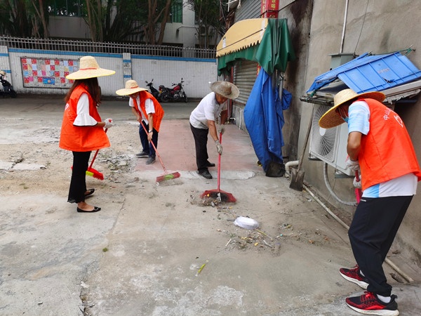 在羅綺冬書記的帶領(lǐng)下,各單位工作人員、全體教師與親子家庭志愿者結(jié)對入戶入社區(qū)進行清潔。烈日炎炎,卻絲毫沒有阻擋大家的熱情。各志愿者“擼起袖子加油干”,孩子們也跟著齊上陣,清掃街邊死角,清理每一處的垃圾、雜物,留下一片整潔。同時,志愿者們除了清潔整治外,還在村道耐心宣傳,將文明知識傳進家家戶戶。黃草帽、志愿服成了街邊一道亮麗的風(fēng)景線。