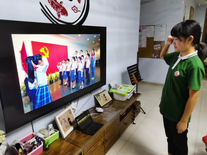 第三部分為隊員們在家參加全國少工委舉行的“從小學先鋒,長大做先鋒”主題網(wǎng)絡直播活動。通過升國旗、唱國歌、主題隊會等形式,激發(fā)愛國熱情。