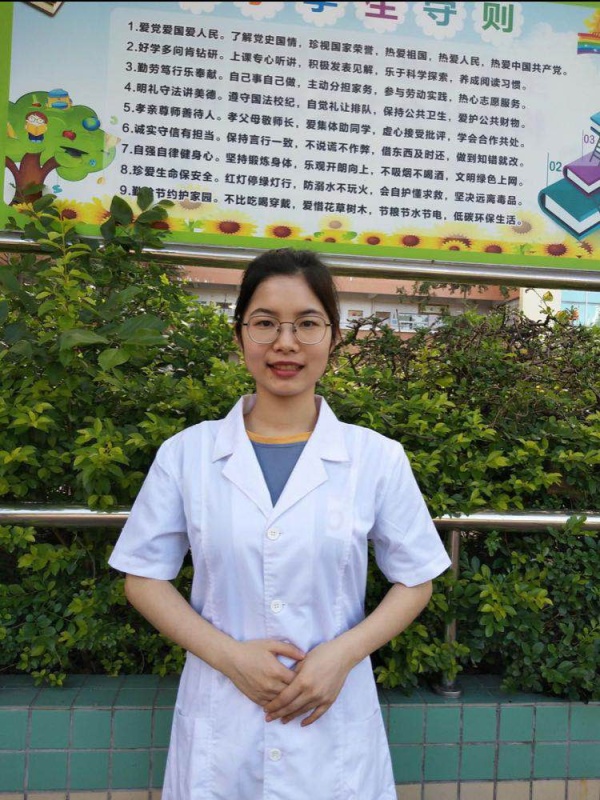 陳婷婷老師既是學(xué)校的校醫(yī),也是衛(wèi)生教師,每天面對(duì)著活潑可愛的小學(xué)生,她的日常工作是幫助他們學(xué)習(xí)、了解、掌握有關(guān)預(yù)防疾病、合理膳食、合理用藥等維護(hù)健康的知識(shí)與技能,增強(qiáng)自我主動(dòng)健康意識(shí),不斷提高健康管理能力??粗⒆觽兊某砷L(zhǎng),陳婷婷老師覺得很有成就感,很享受這份工作。