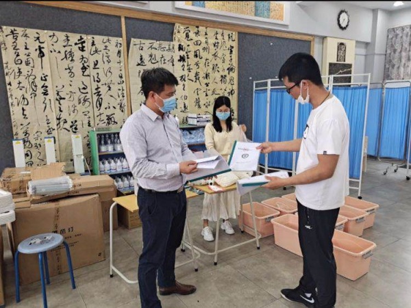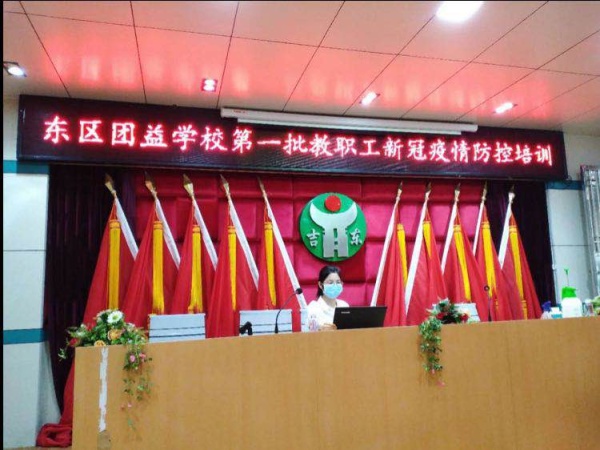 4月13日,陳婷婷老師接到東區(qū)教育事務(wù)指導(dǎo)中心給她的新任務(wù),前往協(xié)助東區(qū)團(tuán)益學(xué)校準(zhǔn)備物資、設(shè)置臨時(shí)隔離區(qū)、健康觀察點(diǎn),參加應(yīng)急演練,迎接返校前上級(jí)單位的各項(xiàng)檢查,給初三返校教職工開展新冠肺炎疫情防控知識(shí)講座,給保潔人員、食堂工作人員講解消毒劑的配制等。