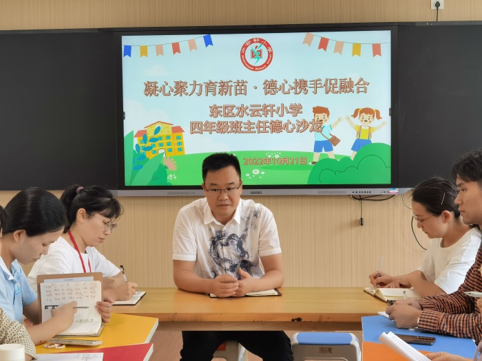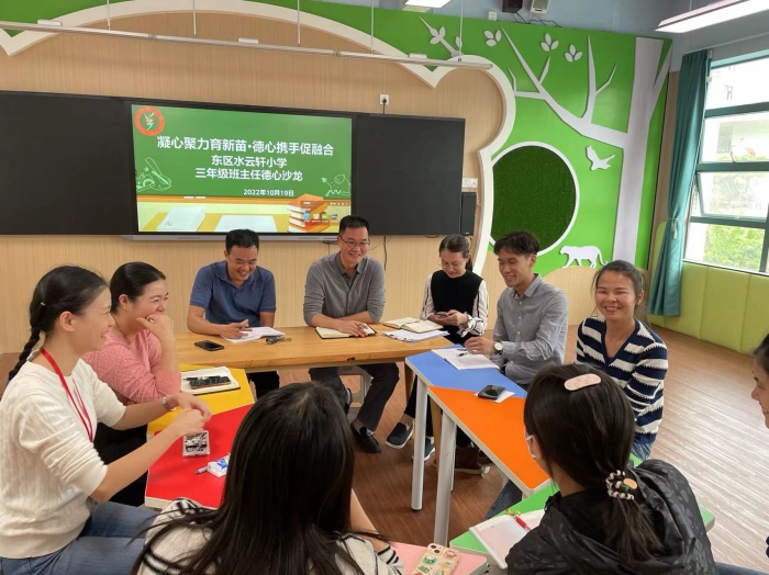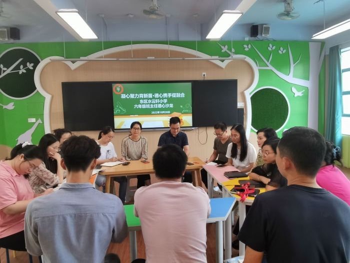 班主任是學(xué)校德育工作的靈魂,是助力學(xué)生成長的核心力量。10月10日—28日,為了解各班級需要關(guān)注的學(xué)生情況,幫助解決班主任在個(gè)人及班級管理中的困境,在學(xué)校德育處的組織下,心育科組開展“凝心聚力育新苗,德心攜手促融合”為主題的班主任德心沙龍活動(dòng)。沙龍歷時(shí)三個(gè)星期,一至六年級共分六場進(jìn)行。參與會(huì)議的除了各年級班主任、心育科組全體成員外,學(xué)校德育處副校長黃文燦、各年級的落級行政和級組長也出席會(huì)議。