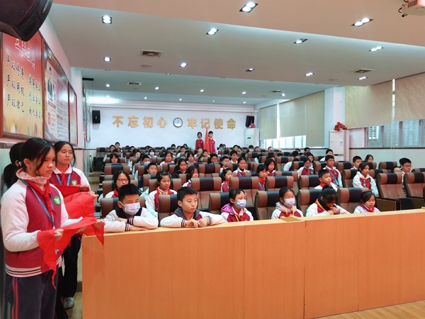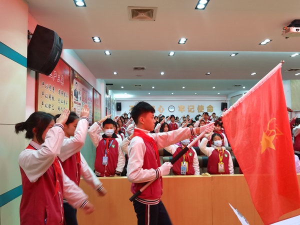 大會(huì)的最后,全體隊(duì)員們一起重溫了入隊(duì)誓詞,隊(duì)員們高舉右拳,在少先隊(duì)總輔導(dǎo)員的帶領(lǐng)下莊嚴(yán)呼號(hào):“準(zhǔn)備著,為共產(chǎn)主義事業(yè)而奮斗!”“時(shí)刻準(zhǔn)備著!”全體代表的呼號(hào),鏗鏘有力!聲音響徹云霄。