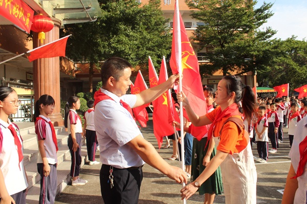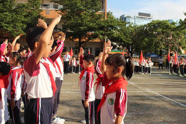 最后,由大隊(duì)輔導(dǎo)員劉丹老師的帶領(lǐng)全體隊(duì)員呼號(hào): “時(shí)刻準(zhǔn)備著……”一字一句鏗鏘有力,充分顯示了作為社會(huì)主義事業(yè)接班人的信心和決心。