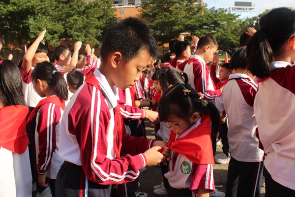 10月15日上午,團(tuán)益學(xué)校的操場上,隊(duì)旗飄揚(yáng),隊(duì)歌嘹亮。為慶祝中國少先先鋒第71個(gè)建隊(duì)日,增強(qiáng)學(xué)校少先隊(duì)組織的光榮感、使命感和責(zé)任感,教育學(xué)生繼承和發(fā)揚(yáng)中國少年先鋒隊(duì)的優(yōu)良傳統(tǒng),培養(yǎng)學(xué)生積極進(jìn)取、健康向上的精神,促進(jìn)學(xué)校紅領(lǐng)巾教育事業(yè)的蓬勃發(fā)展。團(tuán)益學(xué)校舉行了二年級(jí)第二批新隊(duì)員入隊(duì)儀式。