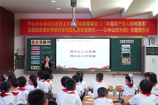 在這莘莘學子揚鞭奮蹄、擂響戰(zhàn)鼓的季節(jié),東區(qū)雍景園小學也迎來了一項盛事。6月30日上午,中山市朱敏嫣名教師工作室省級德育課題《“中國共產(chǎn)黨人精神譜系”主題班會課分學段開發(fā)與應(yīng)用的實踐研究——以中山市為例》開題報告會在東區(qū)雍景園小學綜合電教室舉行。