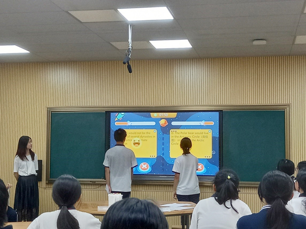 楊婷婷老師以必修三Unit 5 Grammar情態(tài)動(dòng)詞為教學(xué)內(nèi)容,向我們展示了一節(jié)內(nèi)容充實(shí)、節(jié)奏流暢,互動(dòng)性強(qiáng),邏輯性強(qiáng)的語(yǔ)法課,便于學(xué)生內(nèi)化與吸收;劉春江老師以必修三U4 reading and thinking為教學(xué)內(nèi)容,向我們展示了一節(jié)緊貼課文、貼近學(xué)生實(shí)際的閱讀課;孟希桐老師以期末作文復(fù)習(xí)為主題,以本學(xué)期寫過的、背誦過的作文為基礎(chǔ),為同學(xué)們總結(jié)歸納了日語(yǔ)寫作的基本類型,并在課上引導(dǎo)學(xué)生找出作文里面精彩語(yǔ)句,并鼓勵(lì)學(xué)生學(xué)會(huì)應(yīng)用在自己的作文中;馮燕老師以選擇性必修一U1 Reading為教學(xué)內(nèi)容,緊密結(jié)合單元主題People of achievement,以鐘南山院士的事跡為導(dǎo)入,講述了諾貝爾獎(jiǎng)得主屠呦呦發(fā)現(xiàn)青蒿素的過程,使學(xué)生們?cè)鰪?qiáng)了不畏困難、永不放棄的意識(shí);廖哲老師以Book?3?Unit4?課外拓展閱讀What if we spun the other way為主題,向我們展示了一節(jié)英語(yǔ)+地理的跨學(xué)科融合初探課程,以“如果地球自轉(zhuǎn)方向相反,我們的世界現(xiàn)在會(huì)是什么樣子的”的問題為導(dǎo)入,激發(fā)學(xué)生閱讀文章的積極性,課后仍有部分同學(xué)關(guān)于這個(gè)問題進(jìn)行著激烈的討論。