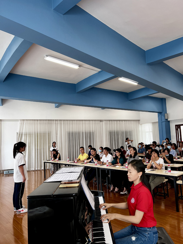 時(shí)光如梭,高一年級(jí)的專業(yè)學(xué)習(xí)轉(zhuǎn)眼即將告一段落,為了讓同學(xué)們有一個(gè)展示和鍛煉的機(jī)會(huì),同時(shí)也是向老師、家長(zhǎng)們匯報(bào)這一學(xué)期來的專業(yè)學(xué)習(xí)成果,2022年6月23日下午三點(diǎn),東區(qū)中學(xué)高一音樂生在董薇老師的帶領(lǐng)下,在音樂室舉行了一場(chǎng)精彩的匯報(bào)演出。全體音樂生及學(xué)生家長(zhǎng)們觀看了演出。此次活動(dòng)受到市教體局專家、校領(lǐng)導(dǎo)、老師和家長(zhǎng)們極高的關(guān)注和重視,中山市教育教學(xué)研究室音樂教研員張琦老師、東區(qū)中學(xué)謝柏芳校長(zhǎng)、馬榮林副校長(zhǎng)、教導(dǎo)處尹冬枚副主任、高一年級(jí)楊婷婷主任、高一藝術(shù)班班主任黃福貴老師、音樂科組廖宜老師、江樂老師、徐卓銳老師和全體學(xué)生家長(zhǎng)出席了此次匯演活動(dòng)。