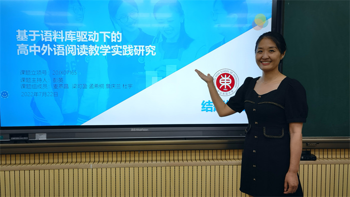彭英老師對課題《基于語料庫驅(qū)動下的高中外語閱讀教學(xué)實(shí)踐研究》進(jìn)行陳述。她指出課題的研究結(jié)果表明,語料庫信息技術(shù)支持下的外語閱讀教學(xué)有利于培養(yǎng)學(xué)生閱讀微技能、提升閱讀素養(yǎng)、分析性思維能力和自主閱讀能力。并促進(jìn)學(xué)生的自主探究能力、小組合作能力和英語學(xué)習(xí)效果。同時(shí)也展示了在全體課題組成員的努力下課題組研究的殷實(shí)成果。最后,彭老師還對課題研究中出現(xiàn)了問題進(jìn)行了反思和展望,并提出了基于課題支撐基礎(chǔ)與深度研究的新的課題研究的思考。緊接著課題組成員孟希桐老師向全體專家評委做了課題成果和校本資源電子材料的展示。