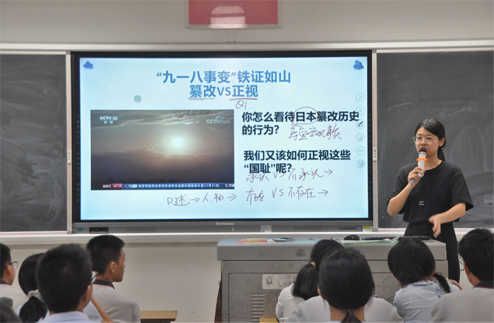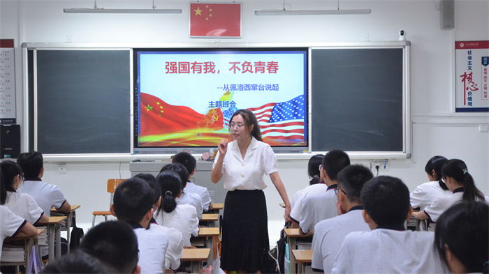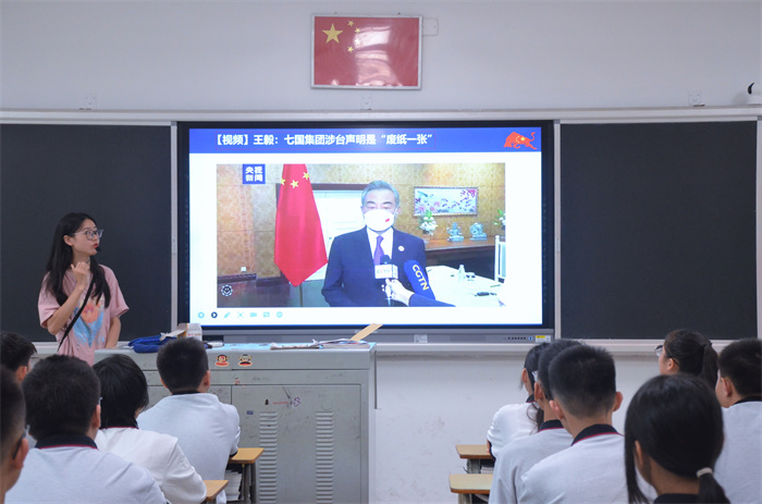 班會(huì)課上,有的班主任老師通過(guò)回顧歷史,從“九一八”事變展開論述;有的班主任則通過(guò)展示時(shí)事新聞,從佩洛西竄臺(tái)開始講起。班主任們從國(guó)防安全的含義、國(guó)防安全教育意義、國(guó)防安全事件、現(xiàn)代化國(guó)防建設(shè)等多個(gè)維度引導(dǎo)學(xué)生了解國(guó)防安全的重要性。