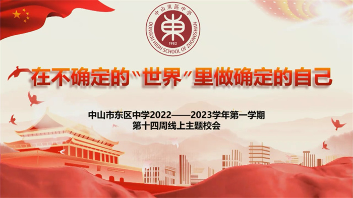 疫情雖然阻攔了師生們走進(jìn)校園的腳步,卻阻攔不了我們教與學(xué)的腳步。為進(jìn)一步做好疫情期間的教育教學(xué)工作,促進(jìn)學(xué)生居家期間高效學(xué)習(xí)和身心健康發(fā)展,11月28日上午,中山市東區(qū)中學(xué)采用線上直播的方式進(jìn)行第十四周升旗禮和班會(huì)課,化疫情危機(jī)為教育契機(jī),讓德育工作不缺位,讓學(xué)生成長(zhǎng)不延期。