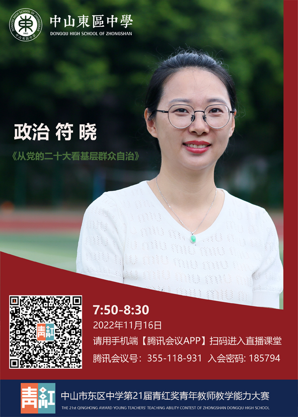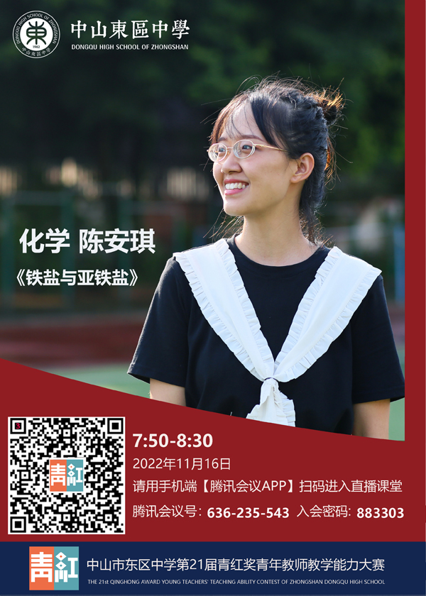 為了探索青年教師專業(yè)發(fā)展的有效路徑,培養(yǎng)新生力量,我校定于2022年11月16日(星期三)上午舉行中山市東區(qū)中學(xué)第21屆“青紅獎(jiǎng)”青年教師教學(xué)能力大賽活動(dòng),給青年教師搭建展示自我和交流學(xué)習(xí)的平臺(tái),以提高青年教師的教育教學(xué)水平,促進(jìn)學(xué)校的可持續(xù)性發(fā)展。