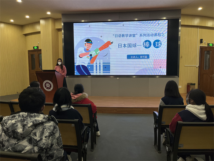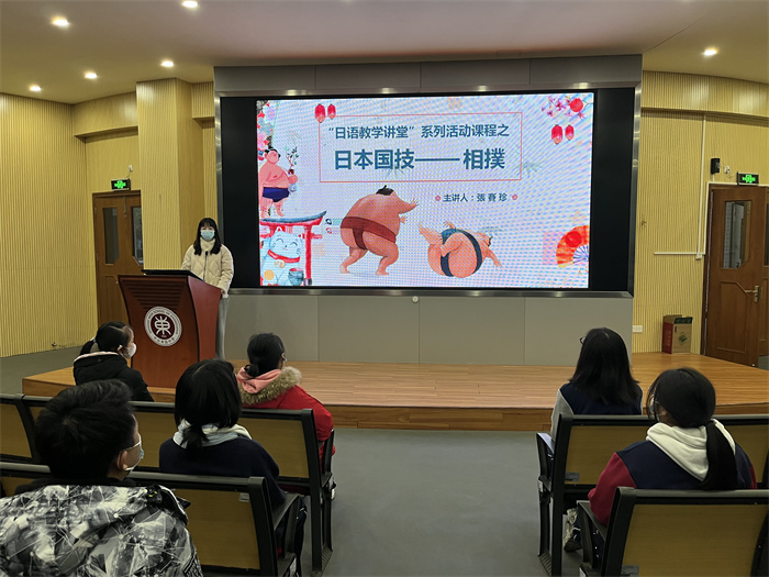 此外,為豐富校園文化生活,發(fā)掘?qū)W生課外興趣,打造日語教學(xué)的第二課堂,梁可盈老師和張賽珍老師在會(huì)后分別繼續(xù)開展“日語教學(xué)講堂”系列活動(dòng)課程——棒球文化和相撲文化。梁可盈老師指出,棒球運(yùn)動(dòng)是被譽(yù)為最講禮儀、最講感恩的運(yùn)動(dòng)。棒球精神與中國文化在無形中達(dá)成了一種契合。希望大家能夠感悟棒球精神,學(xué)會(huì)感恩、守規(guī)矩、講禮貌。張賽珍老師通過有趣的視頻和圖片帶大家走入相撲的世界,帶領(lǐng)大家深入地了解蘊(yùn)含在相撲背后的體育競技精神。