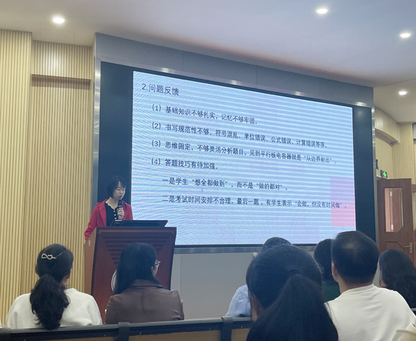 接著,各學(xué)科備課組長對大灣區(qū)一模成績進(jìn)行分析總結(jié)。語文備課組長鐘檢秀老師剖析總結(jié)找癥結(jié),有的放失重落實(shí);數(shù)學(xué)備課組長黎強(qiáng)老師分析了試卷以及學(xué)生成績,找出教學(xué)中存在的問題,提出下階段的數(shù)學(xué)教學(xué)方向與具體措施;物理備課組長紀(jì)天舒老師反饋學(xué)生的答題情況,反思物理教學(xué),提出二輪備考策略;化學(xué)備課組長向宗印老師通過數(shù)據(jù)指出教學(xué)存在問題,并分析主觀和客觀的原因,分享解決方法;政治備課組長王穎麗老師代表高三政治備課組總結(jié)經(jīng)驗(yàn)和做法,繼續(xù)潛心教學(xué),深耕課堂。