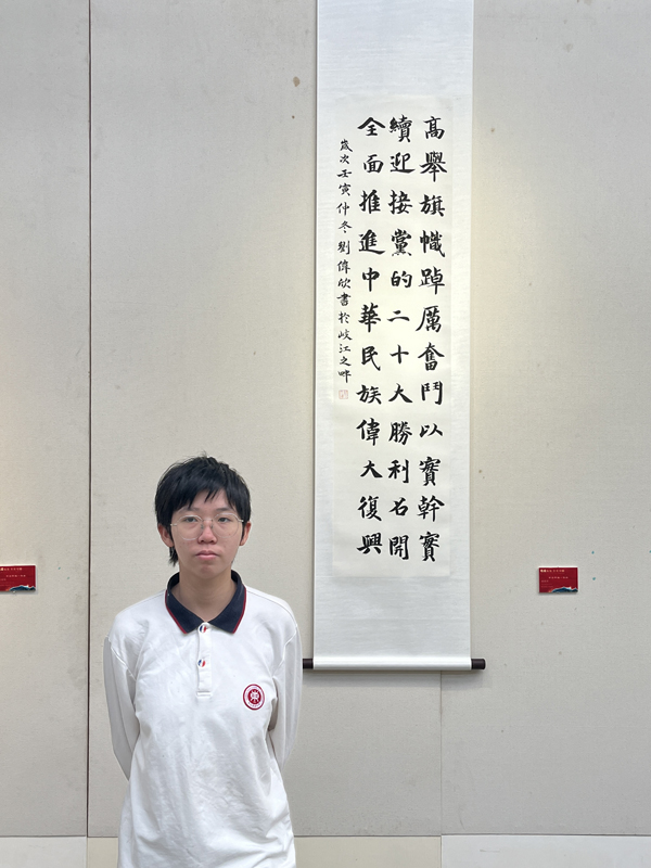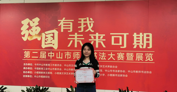 東區(qū)中學師生自接到比賽通知,積極準備,從作品內容、形式、書體等方面反復打磨,共提交8份作品,全部獲獎。其中,楊麗媛老師獲教師組一等獎,甘敏華老師獲教師組二等獎;尹晨、劉偉欣同學獲中學甲組一等獎,劉夢熙、鄧希獲中學甲組二等獎,林巧茵、鄭梓嵐獲中學甲組三等獎。