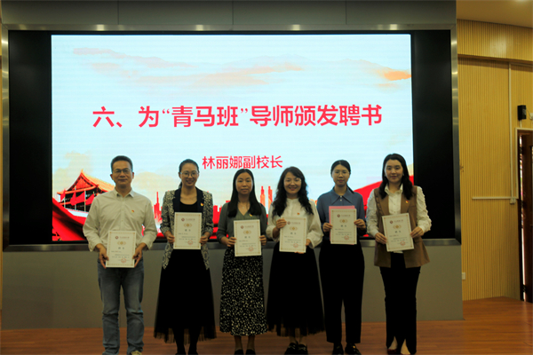 接著,謝柏芳書記為青馬班授旗。青馬紅旗在鄒明燊同學手中揮舞。這鮮紅的旗幟將會成為新一期青馬學員靚麗青春里一抹鮮亮的底色。隨后,林麗娜副校長分別為導師頒發(fā)聘書,德育處符曉主任為第三期青馬學員授牌。聘書和學員證的頒發(fā),意味著新一期青馬工程的正式開啟。希望青馬學員們能夠在優(yōu)秀黨員教師的身上學習黨史、學習科學理論知識,學習他們身上愛黨敬業(yè)的優(yōu)良品質(zhì)。