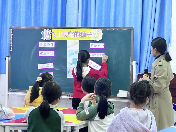 第一節(jié)課,莫家敏老師給我們帶來繪本課例《飛上天空的獅子》。在課堂上,莫老師積極引導(dǎo),激發(fā)學(xué)生的閱讀興趣,調(diào)動學(xué)生課堂的參與度和積極性。借助繪本向?qū)W生們講授生活中要勇敢表達(dá)自己的想法,與家人、同伴、老師要理解與坦誠的道理。