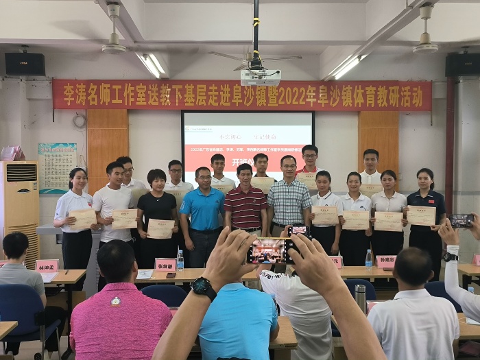 活動(dòng)主要以三個(gè)方向來(lái)進(jìn)行。一是市集訓(xùn)隊(duì)進(jìn)行隊(duì)列隊(duì)形、廣播體操以及個(gè)人才藝展示,他們備戰(zhàn)廣東省體育教師技能大賽也在緊鑼密鼓的集訓(xùn)中。二是李濤名師工作室成員及阜沙鎮(zhèn)骨干教師張曉華、吳冠峰、麥翠芬進(jìn)行課例展示及市集訓(xùn)隊(duì)員同時(shí)進(jìn)行12分鐘的微縮課,最后由省、市級(jí)專家對(duì)3位老師精彩的體育課例進(jìn)行評(píng)課。并且頒發(fā)授課榮譽(yù)證書。三是2022年北京冬奧會(huì)國(guó)家隊(duì)隊(duì)醫(yī)林坤柔康復(fù)治療師以“運(yùn)動(dòng)康復(fù)”為主題作講座以及各位老師交流互動(dòng)環(huán)節(jié),由李濤教授為我們答疑解惑。