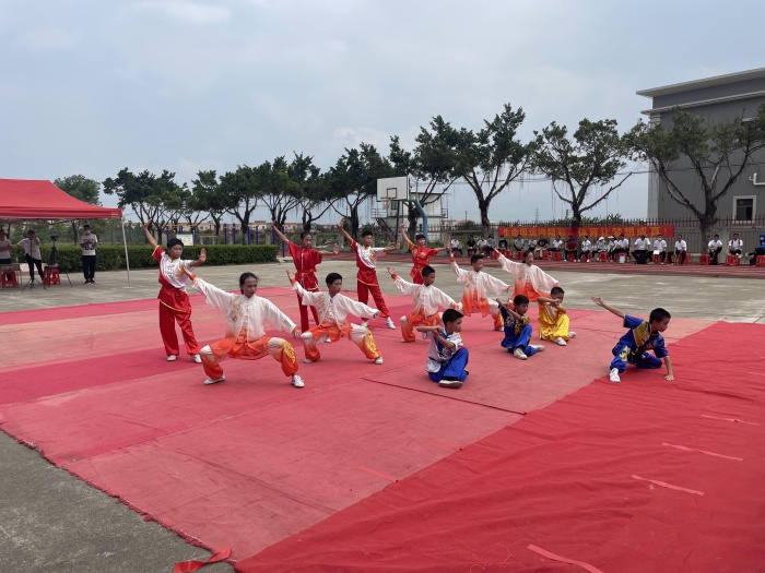 下午2點(diǎn),中山市阜沙鎮(zhèn)豐聯(lián)小學(xué)的操場(chǎng)熱鬧非凡,走近一看,原來(lái)是豐聯(lián)小學(xué)的武術(shù)校隊(duì)學(xué)生在為本次體育教研活動(dòng)進(jìn)行暖場(chǎng)表演。武術(shù)表演凸顯出了豐聯(lián)小學(xué)的體育特色和對(duì)出席本次體育教研的領(lǐng)導(dǎo)、嘉賓、李濤名師工作室的成員及到場(chǎng)的所有人員表示熱烈的歡迎。