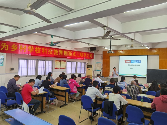 10月19日下午,廣東省知識產(chǎn)權(quán)研究會中小學(xué)教育專業(yè)委員會副主任、九江鎮(zhèn)中學(xué)榮譽校長、正高級教師、特級教師、國家名師、國培專家劉志偉老師蒞臨阜沙鎮(zhèn)豐聯(lián)小學(xué),以“創(chuàng)新,點亮人生”專題為豐聯(lián)小學(xué)全體教師進行了一場青少年科技創(chuàng)新教育的指導(dǎo)培訓(xùn)。