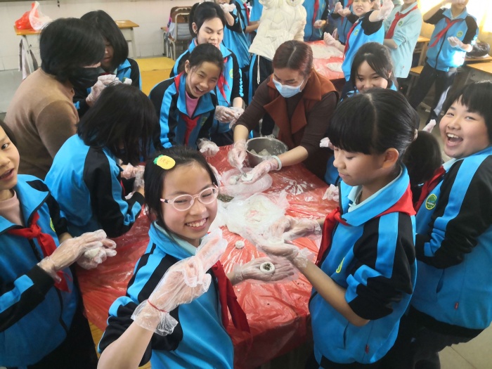 有趣地猜燈謎之后,孩子們回到班級,和家長志愿者、老師一起,體驗做湯圓的樂趣。孩子們搓、捏、按、團,做成一個個香甜誘人的湯圓,分享團圓的味道,傳達(dá)元宵佳節(jié)的祝福與心愿,感受到了中華民俗的獨特魅力。