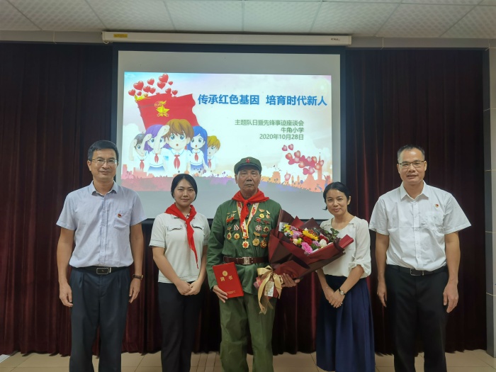 為培育牛角小學少先隊員聽黨話,跟黨走的紅色基因,用實際行動把紅色基因一代代傳下去,引導隊員向革命先鋒學習,銘記革命先烈光榮事跡,倍加珍惜今天幸福生活,10月28日下午,牛角小學開展“傳承紅色基因 培育時代新人”主題隊日活動暨英雄事跡座談會。本次活動由大隊輔導員梁子柔老師主持,牛角小學全體師生參加。