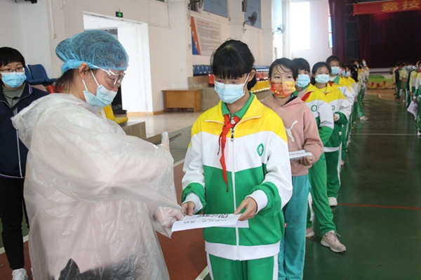 演練分三個情景開展,第一個情景是以廣播講解和現(xiàn)場提問的形式開展發(fā)現(xiàn)有新冠密接者、陽性報告情況時的處置,由馬成海副校長與全體同學(xué)進(jìn)行講解,分別從三個方面進(jìn)行理解和掌握:當(dāng)學(xué)校教職員工、學(xué)生有新冠密接者、陽性報告情況時,配合疾控中心,根據(jù)疾控中心研判,對全校封閉管理,實(shí)施對學(xué)生、老師采取科學(xué)的應(yīng)對措施。1、如果學(xué)生未在學(xué)校時,學(xué)校進(jìn)行封閉管理,通知學(xué)生停止返校,留在家里等待學(xué)校的進(jìn)一步通知;2、如果學(xué)生是在校學(xué)習(xí)期間,學(xué)校實(shí)施封閉管理,學(xué)生戴好口罩,留在班級等待下一步的安排;3、如果學(xué)生在上學(xué)、放學(xué)途中,則根據(jù)具體要求進(jìn)行安排和布置。接著第二個情景是師生全員檢測核酸演練,演練嚴(yán)格按照要求,學(xué)生按班級輪流集中檢測,在檢測前打好自己的二維碼,現(xiàn)場進(jìn)行掃碼登記、測溫、登記、檢測。檢測程序有條不紊,工作按部就班,很好地詮釋了檢測的要求和做法。最后第三個情景是學(xué)生不舒服產(chǎn)生的嘔吐物的處理方法和做法的演練,在學(xué)生不舒服產(chǎn)生嘔吐物后,學(xué)校的校醫(yī)和清潔工人嚴(yán)格按照處理嘔吐物的方法,對嘔吐物進(jìn)行清理、處理和消毒工作,一件一步,認(rèn)真落實(shí)。