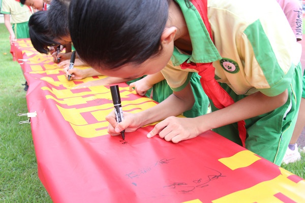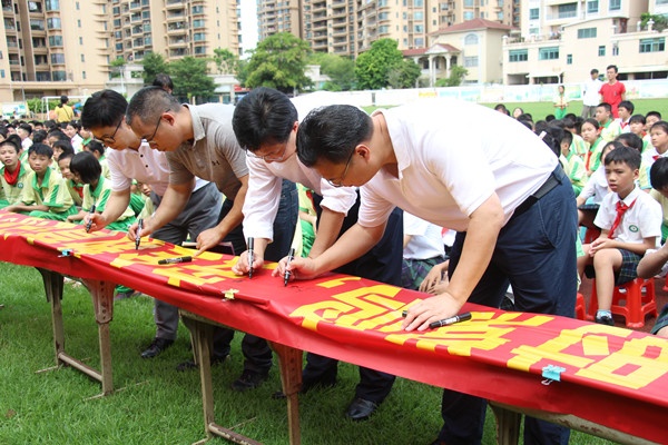 師生簽名儀式上,全體師生堅決履行“安全的踐行者和參與者”的職責,莊嚴地簽下了自己的名字。