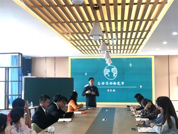 為了提高教師的教學(xué)素養(yǎng),加強(qiáng)教師的教學(xué)基本技能,促進(jìn)專業(yè)成長,5月16日下午,中山市實(shí)驗(yàn)小學(xué)教育集團(tuán)大豐小學(xué)開展了“板書之美——怎樣寫好粉筆字”培訓(xùn)活動(dòng)。本次活動(dòng)特邀中國書法家協(xié)會(huì)會(huì)員、中山市書法家協(xié)會(huì)常務(wù)副主席、中山市教師書法協(xié)會(huì)主席、中山市實(shí)驗(yàn)小學(xué)教師李武耀老師主講,參加本次活動(dòng)的有港口鎮(zhèn)教育和體育事務(wù)中心劉憲軍主任以及學(xué)校全體教師。