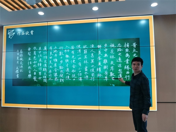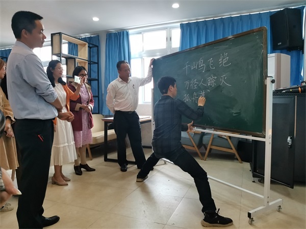 李武耀老師精心準(zhǔn)備,圍繞“實(shí)用書寫和書法藝術(shù)”“粉筆字書寫姿勢”“粉筆字書寫要領(lǐng)”“粉筆字書法作品欣賞”以及“粉筆字書寫學(xué)習(xí)建議”五個(gè)方面開展本次培訓(xùn)?;顒?dòng)一開始,李老師就強(qiáng)調(diào)了“實(shí)用書寫”與“書法藝術(shù)”的異同,指明粉筆字書寫屬于實(shí)用書寫的范疇,要符合“美觀漂亮”“行筆有法”“篇章合理”等標(biāo)準(zhǔn)。同時(shí),李老師還引導(dǎo)教師要關(guān)注粉筆的書寫姿勢,這也是寫好粉筆字的關(guān)鍵。在此次培訓(xùn)活動(dòng)中,李老師細(xì)致地結(jié)合現(xiàn)場板書和字帖圖片,歸納講解了粉筆字書寫的七大要領(lǐng):“行筆有法”“平行等距”“主筆突出”“上下對正”“左右看齊”“連斷有別”和“大小一致”。為了讓教師們更直觀感受粉筆書寫的美,除了讓教師們現(xiàn)場拿著小黑板進(jìn)行練習(xí)以外,李老師還展示了七幅作品讓教師們欣賞。最后,李老師提出“興趣是最好的老師”,鼓勵(lì)教師們在平日里多加練習(xí),另外還建議教師們跟毛筆書法相結(jié)合,以提高自身的粉筆字書寫水平。教師們紛紛表示如醍醐灌頂,受益匪淺,體會(huì)到了下筆有“神”。