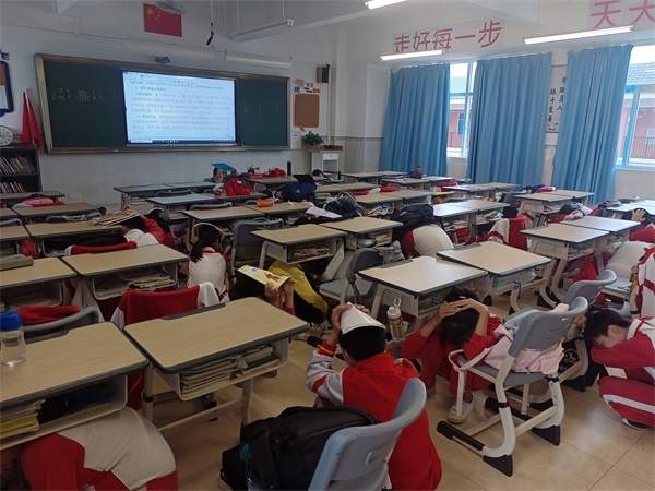演練正式開始前,各班主任在教室內(nèi)對學(xué)生進(jìn)行了防震逃生演練的安全教育,讓學(xué)生明確當(dāng)?shù)卣鸬絹淼臅r候應(yīng)該怎么做?;顒又?,二到六年級全體師生參與到此項逃生演練活動中來,而一年級的師生則在一旁進(jìn)行觀摩。隨著第一次警報鈴響起,在教室正常進(jìn)行學(xué)習(xí)活動的師生們立即拿起書包等物品擋著頭部,蹲在書桌下方或旁邊進(jìn)行避險。當(dāng)?shù)诙尉瘓筲忢懫鸬臅r候,全體師生按照演練預(yù)案規(guī)定的疏散路線,緊張有序地撤離到了學(xué)校的大操場,整個撤離過程用時1分53秒,期間沒有發(fā)生擁擠或踩踏等意外情況。整個演練過程緊張、迅速,師生們的逃生動作規(guī)范、有條不紊。 隨后,謝振森主任對這次演練進(jìn)行了小結(jié),他指出,災(zāi)難無情,生命無價,小學(xué)生更要提高安全防范意識,加強(qiáng)學(xué)習(xí)安全知識,提高自救、自護(hù)能力,掌握在危急情況下機(jī)智逃生的本領(lǐng),并積極向家長、朋友和鄰居宣傳,讓更多的人關(guān)注安全,珍愛生命。