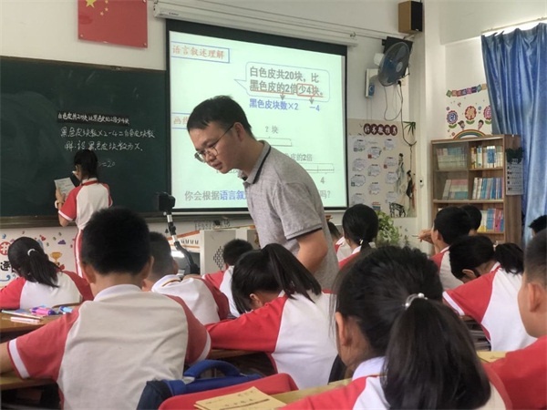 課題組成員葉露老師首先展示了《實際問題與方程(2)》這節(jié)匯報課。葉露老師精心設(shè)計教學環(huán)節(jié),圍繞課堂內(nèi)容引導學生在轉(zhuǎn)變題目句式中理解題意,在借助畫圖策略分析中明晰數(shù)量關(guān)系,通過小組討論進一步總結(jié)解題方法,取得了良好的教學效果。